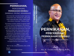 - Buku ini menguraikan secara baik tentang pernikahan, perceraian dan pernikahan kembali baik secara umum, terlebih secara iman Kristen.